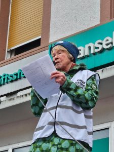 Nach einer kurzen, musikalischen Pause formierte sich unser Demonstrationszug zur evangelischen Kirche, bevor die AfD- Veranstaltung beendet war, da wir uns unsere Demonstration nicht von der AfD vorschreiben lassen. Wir trafen und begrüßten auf dem Rathausplatz die “Kidical Mass” Tour.